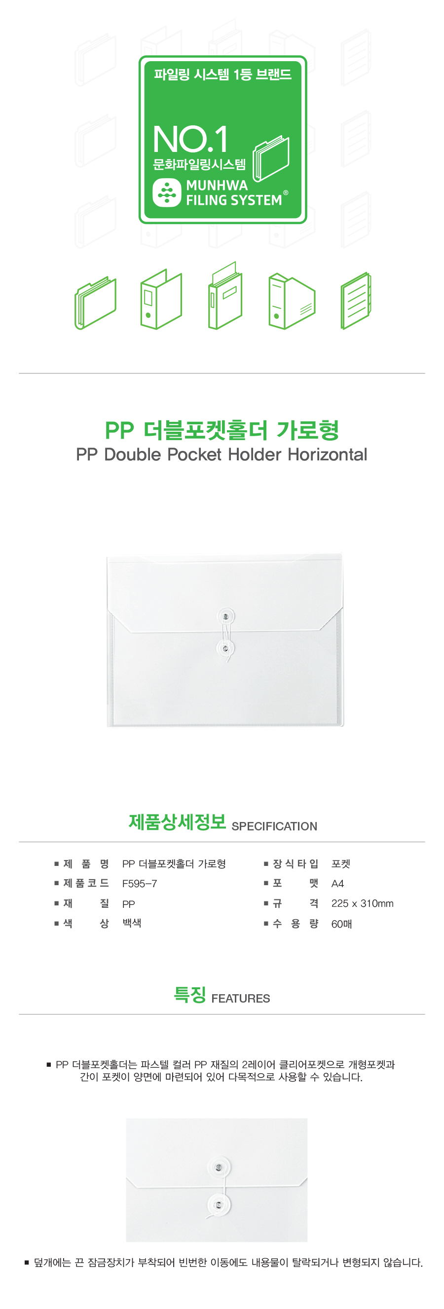 기타파일, 문화산업, F595-7, 투포켓봉투홀더, 가로형, 백색