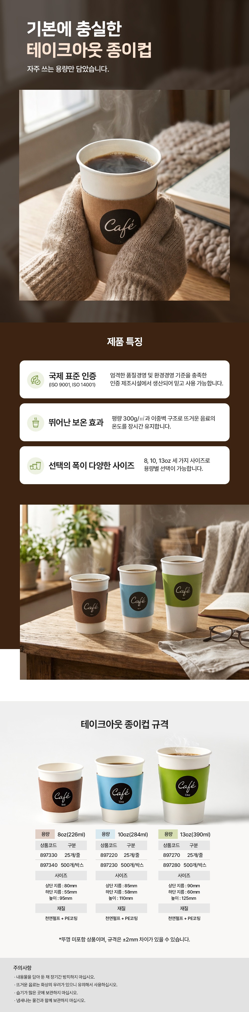 테이크아웃 종이컵 8oz, 237ml(브라운/줄/25개)
