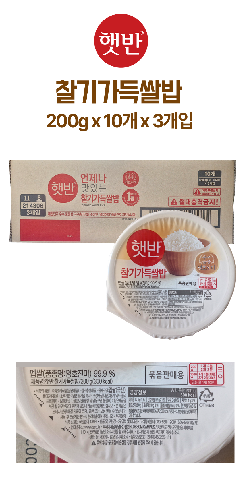 ■ 상품명 : ⓣ[업체별도배송]햇반 200g*10개(3세트/박스/CJ)