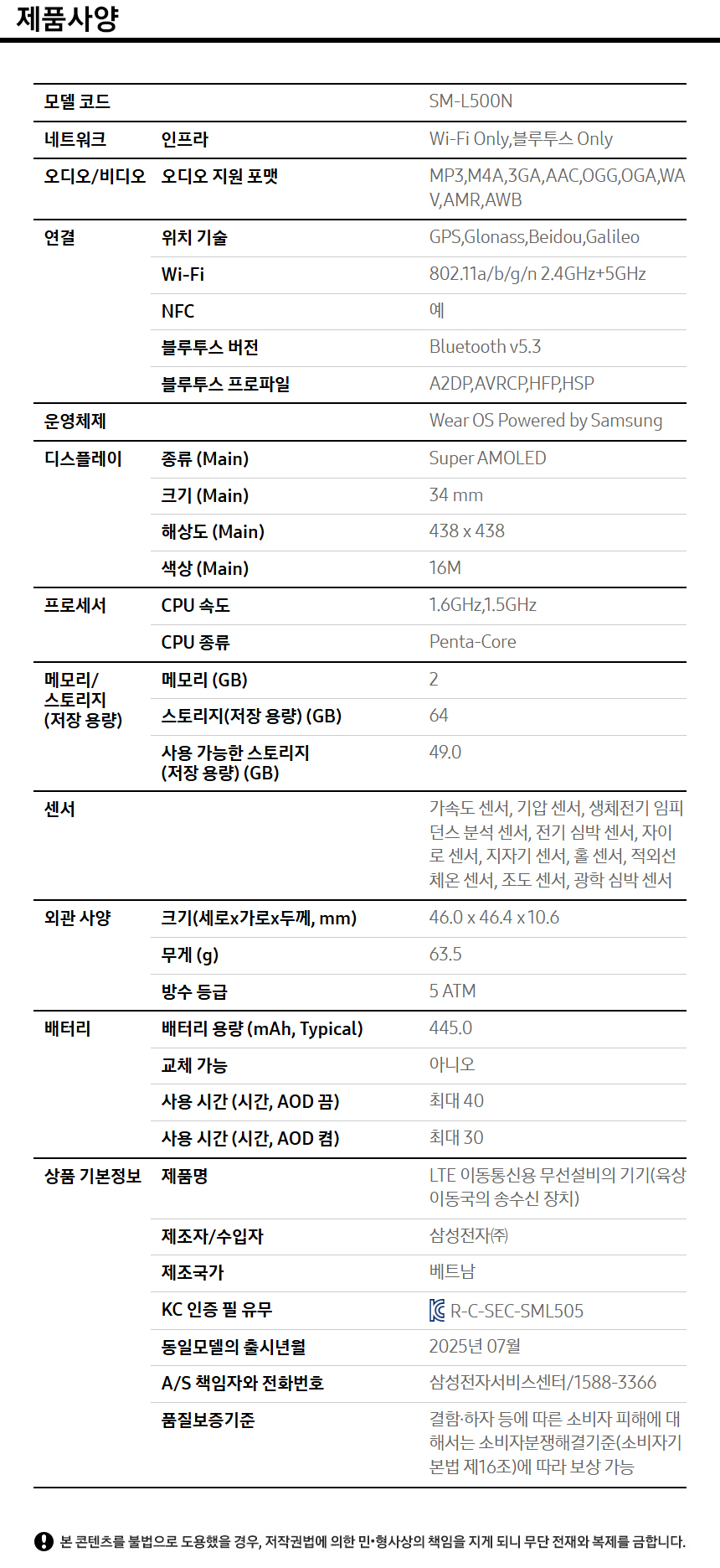 ■ 품명 및 모델명 : 갤럭시 워치8 클래식(SM-L500N/46mm/블랙/삼성)