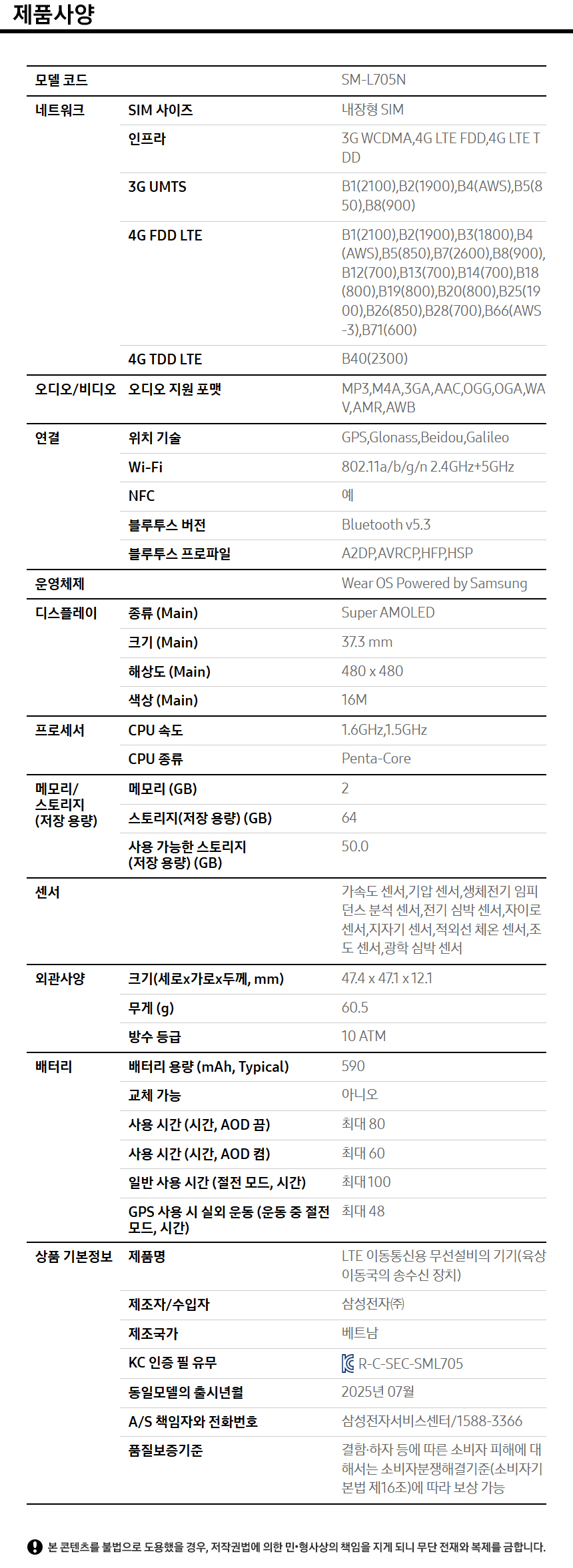 ■ 품명 및 모델명 : 갤럭시 워치8 울트라(SM-L705N/47mm/실버/삼성)