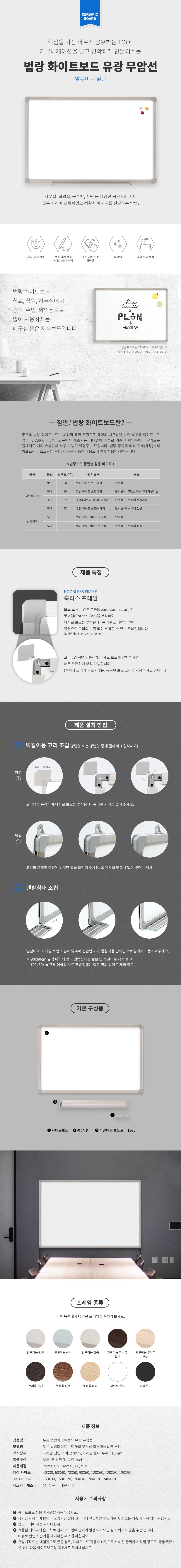 더슬림 자석보드(화이트프레임/350*280/두문)