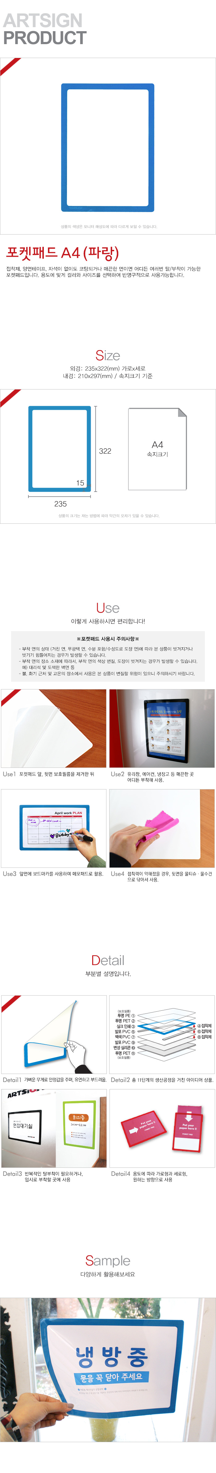 포켓패드(파랑/210*297(A4)/1개입/PP0003/아트사인)(8832)