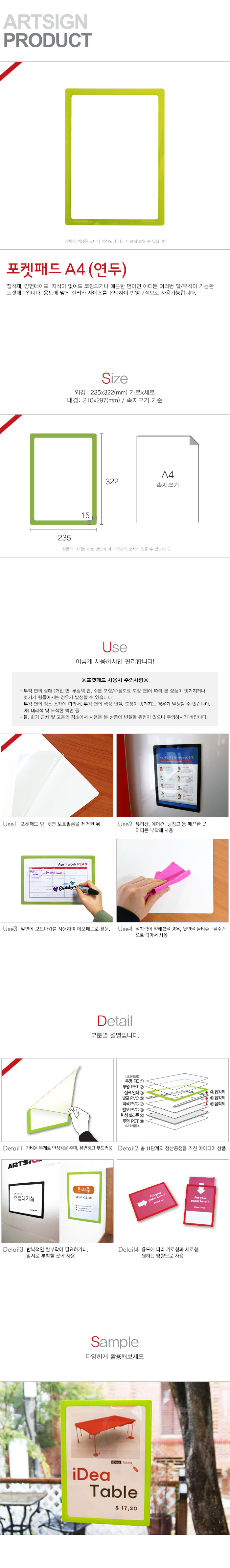 포켓패드(연두/210*297/1개입/PP0004/아트사인)(8833)
