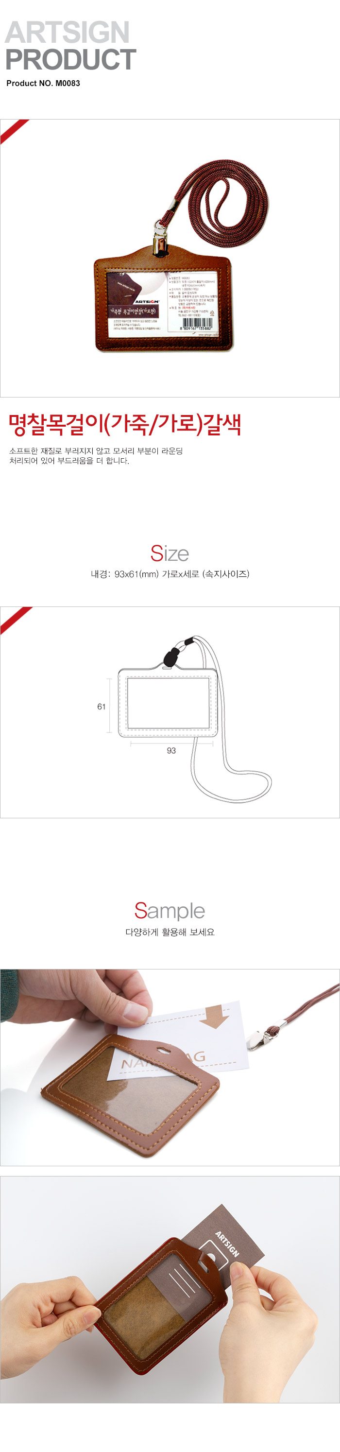 가죽형목걸이(가로/93*61mm/1개입/갈색/아트사인)/M0083(2367)